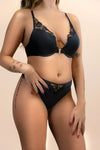 Zweiteiliges schwarzes Dessous-Set mit Push-up-BH